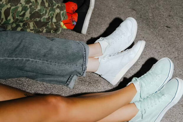 Pour les personnes minces, il s’agit plutôt d’éviter l’effet tassé. Les bottines fines, les escarpins légers ou les sneakers élégants font parfaitement l’affaire. En revanche, les chaussures plates sans structure peuvent casser la dynamique.